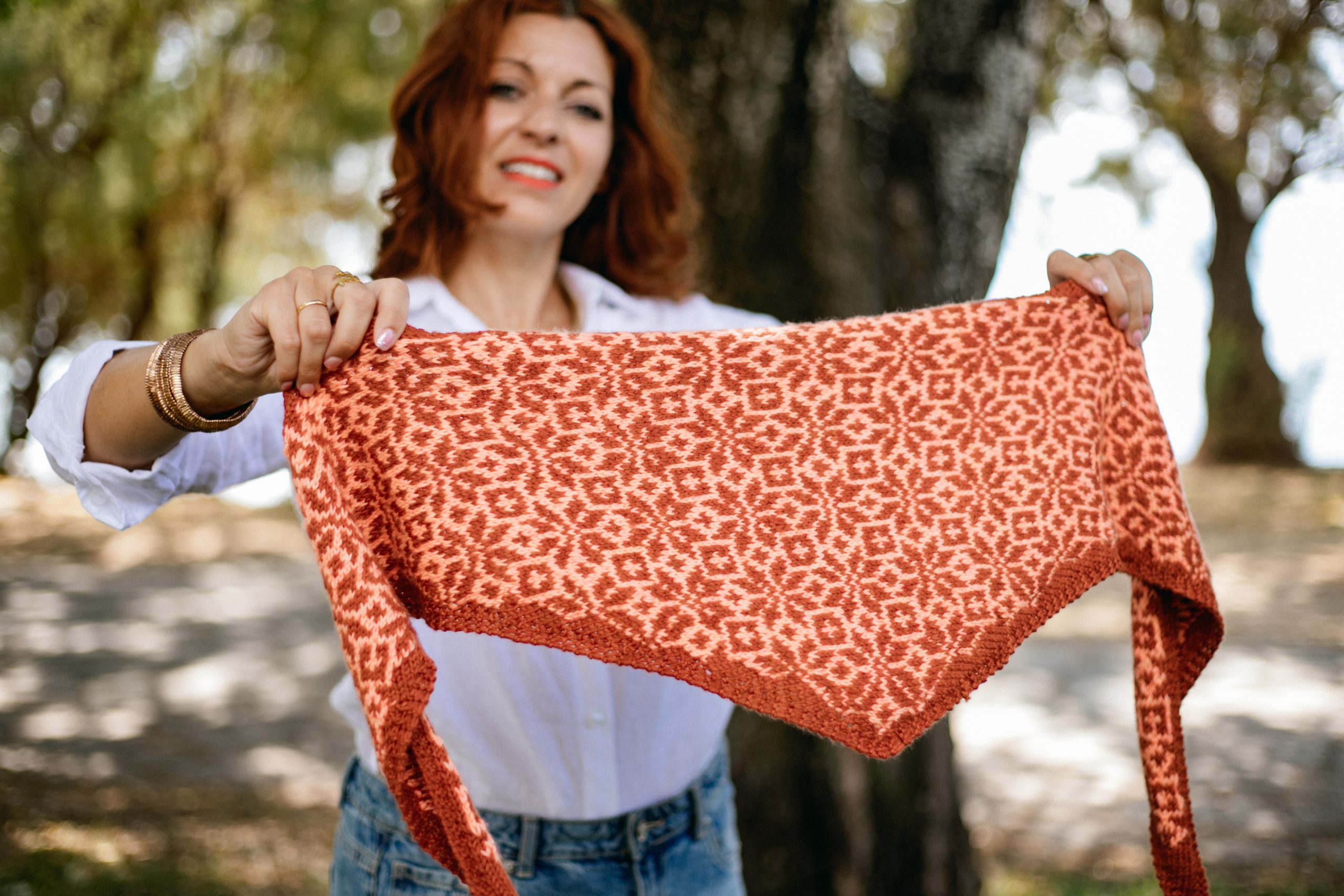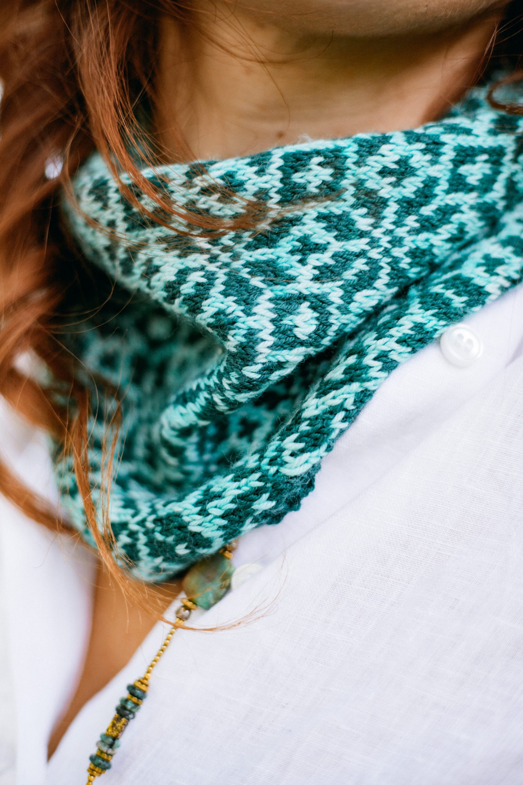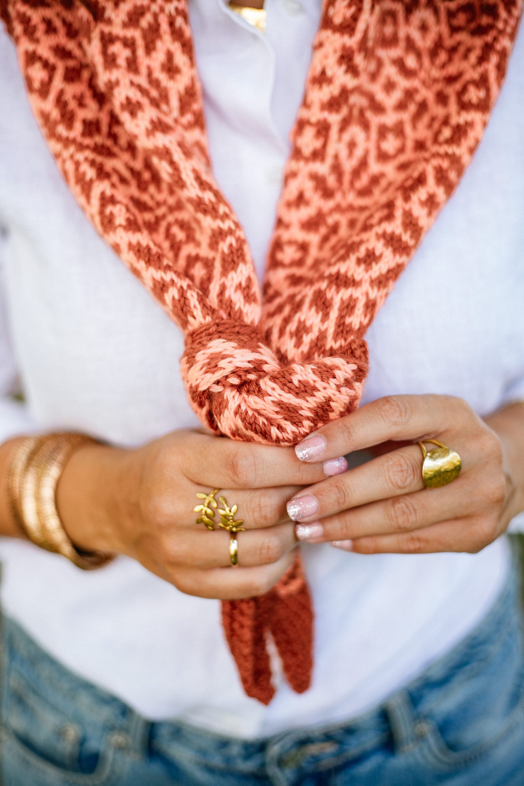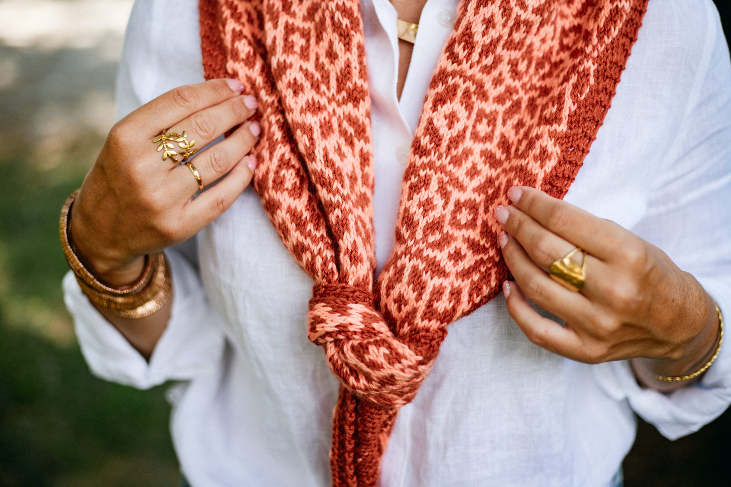 This lovely, small scarf is the perfect project to learn or practice Fair Isle knitting—or simply to enjoy some joyful, colorful knitting time! Fast to knit and fun to make, it’s an ideal accessory for gifts or stash-busting.